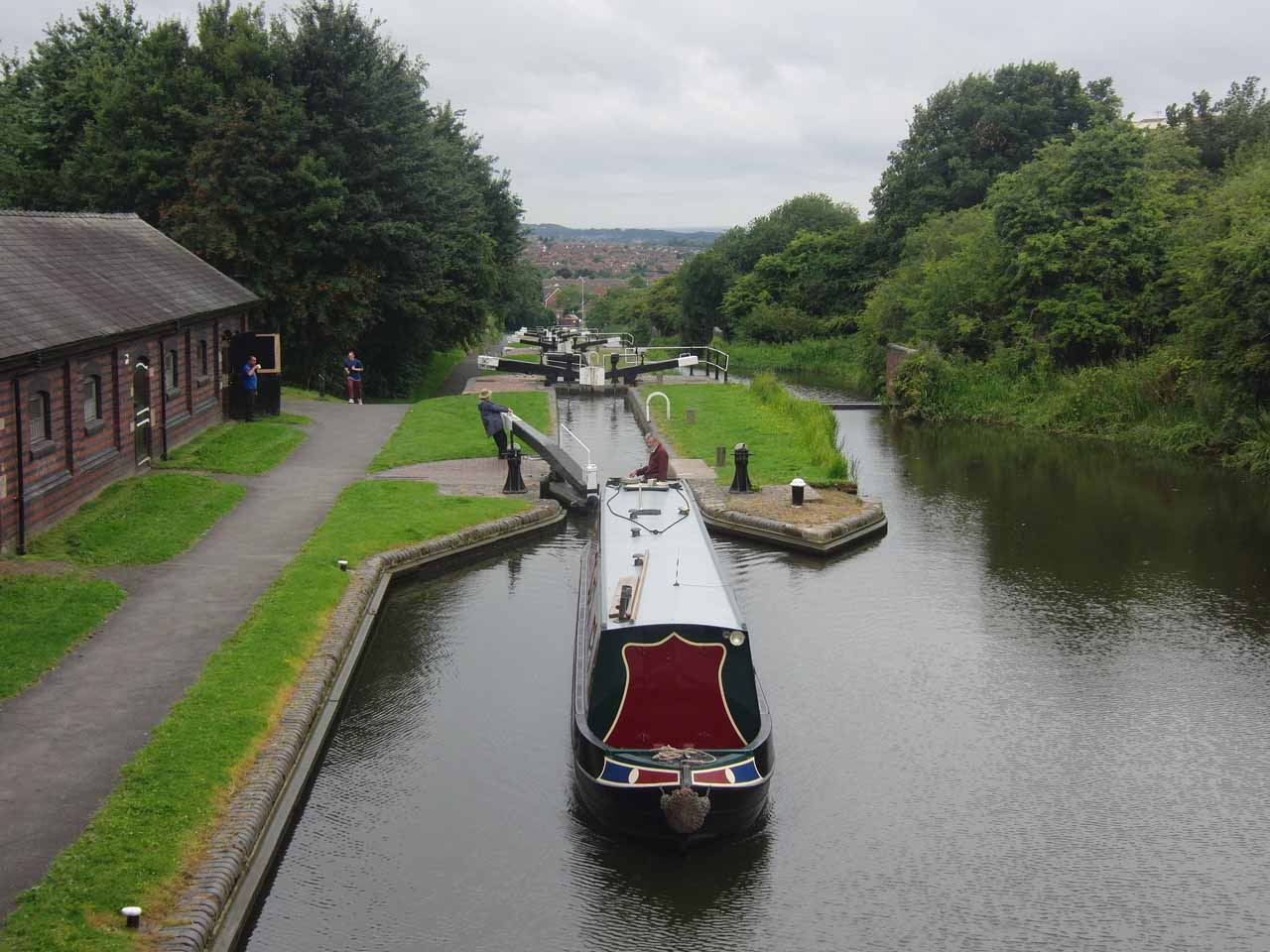 However first there was the small matter of two well known lock flights to pass through before we got there. The first, the Stourbridge locks starts immediately you turn out of the Stourbridge Town arm, and there are 16 of them. Cath and I didn't get off to a great start, as gates were blowing open again before we could draw paddles, and we were only in the second lock when we were aware a hire boat with a very large crew was in pursuit. However we invoked our secret weapon, David. When David is determined we will stay ahead of another boat, then we seldom have much trouble doing so! Once he had engaged "warp drive" we fair belted up the 16, and were never in danger of being caught!
